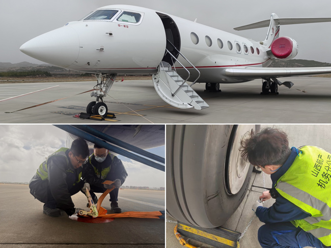 在航班運行方面,太原機場運管委提前組織空管、航司及各駐場單位召開運管委會議進行會商,動態評估氣象變化趨勢,科學調整航班計劃。與空管氣象部門實時對接,每小時滾動發布精細化預警通報,并統籌優化機位資源,優先調配地面設施完備的停機位集中停放過夜航空器,增強航空器系留穩定性。