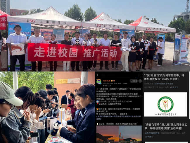 在淡季市場背景下,太原機場精準鎖定青年群體,于9月中旬聯合中國國際航空、深圳航空、山東航空、昆明航空、東方航空、海南航空、南方航空、龍江航空及同程旅行等航空公司和OTA平臺,在山西傳媒學院、山西中醫藥大學、山西大學(塢城校區)、山西大學(東山校區)開展“我為師生辦實事、機票進校園”系列活動。此次活動獲得了廣泛關注,同程旅行通過官方微博積極宣傳,山西中醫藥大學公眾號、山西大學公眾號也發布了相關推文,共同擴大了活動影響力,有效激發了青年學子的出行熱情。此舉不僅彰顯了太原機場“以旅客為中心”的服務理念,更積極踐行社會責任,助力構建青年友好型航空樞紐。